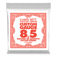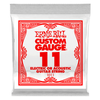 Ernie Ball Plain Steel Electric or Acoustic Guitar Strings are made of specially tempered tin plated high carbon steel used on electric and acoustic guitars. Ernie Ball revolutionized the market by offering Custom-Gauge single string options allowing guitarists to create personalized string sets. Length: 39.5" / Taper: NA