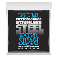 Ernie Ball Slinky Stainless Steel Wound Electric Guitar Strings are made from stainless steel wire wrapped around tin plated, hex shaped, steel core wire. These strings provide brighter tone and longer string life due to stainless steel's inherent anti-corrosive properties. Gauges .008, .011, .014, .022w, .030, .038